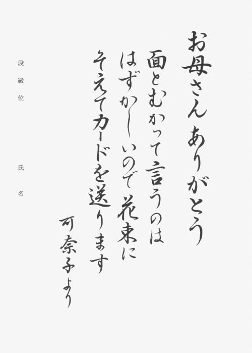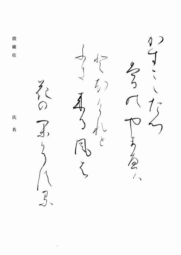 高校生から成人部となります。申請により漢字部、かな部それぞれ各段位(初段~九段)の免許状(有料)が取得できます。