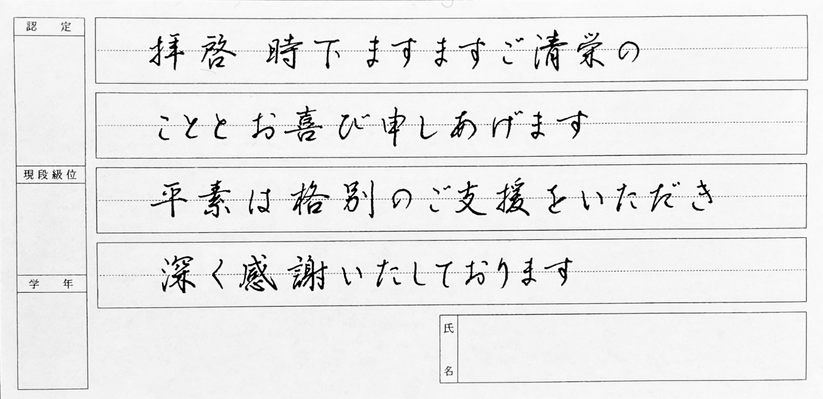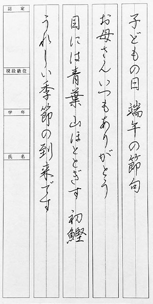 ペン科 横書き検定課題