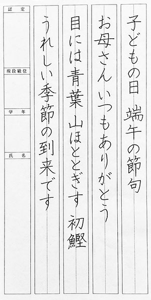 小5 毛筆検定課題(原寸大)